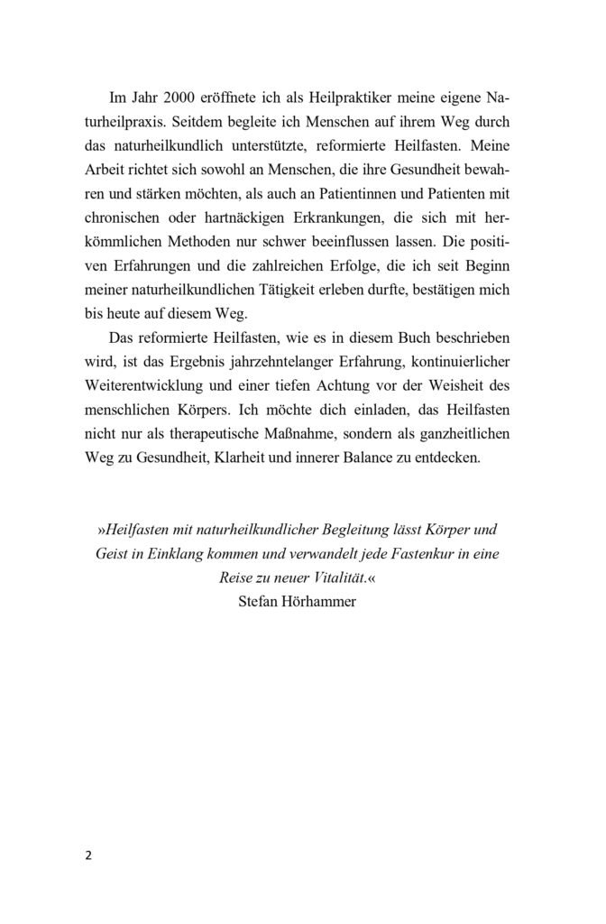 „Heilfasten mit naturheilkundlicher Begleitung lässt Körper und Geist in Einklang kommen und verwandeltjede Fastenkur in eine Reise zu neuer Vitalität.“